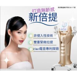 衛部醫器輸字第036117號“希洛尼克” 新倍提聚焦超音波與電波系統 (以下內容簡稱: 新倍提New Doublo)老化往往是多層次的問題,『真皮層』的膠原蛋白及彈力蛋白流失,會使臉部出現細紋、毛孔、鬆弛等現象,而『筋膜層』鬆弛,會使上方的皮膚組織向下滑動,產生下垂、凹陷等情形。新倍提New Doublo是一種「非侵入式」緊膚拉提療程,結合「電音波」和「音波」兩種探頭,具有6種深度,能針對表皮與真皮層的老化,刺激膠原蛋白的重組和新生,使肌膚內部更加飽滿有彈性,同時也能改善筋膜層鬆弛形成的下垂問題,向上拉提肌膚,透過刺激不同層次的肌膚組織,讓「緊緻、拉提」同時到位「不用刀也能變緊緻!新倍提非侵入..